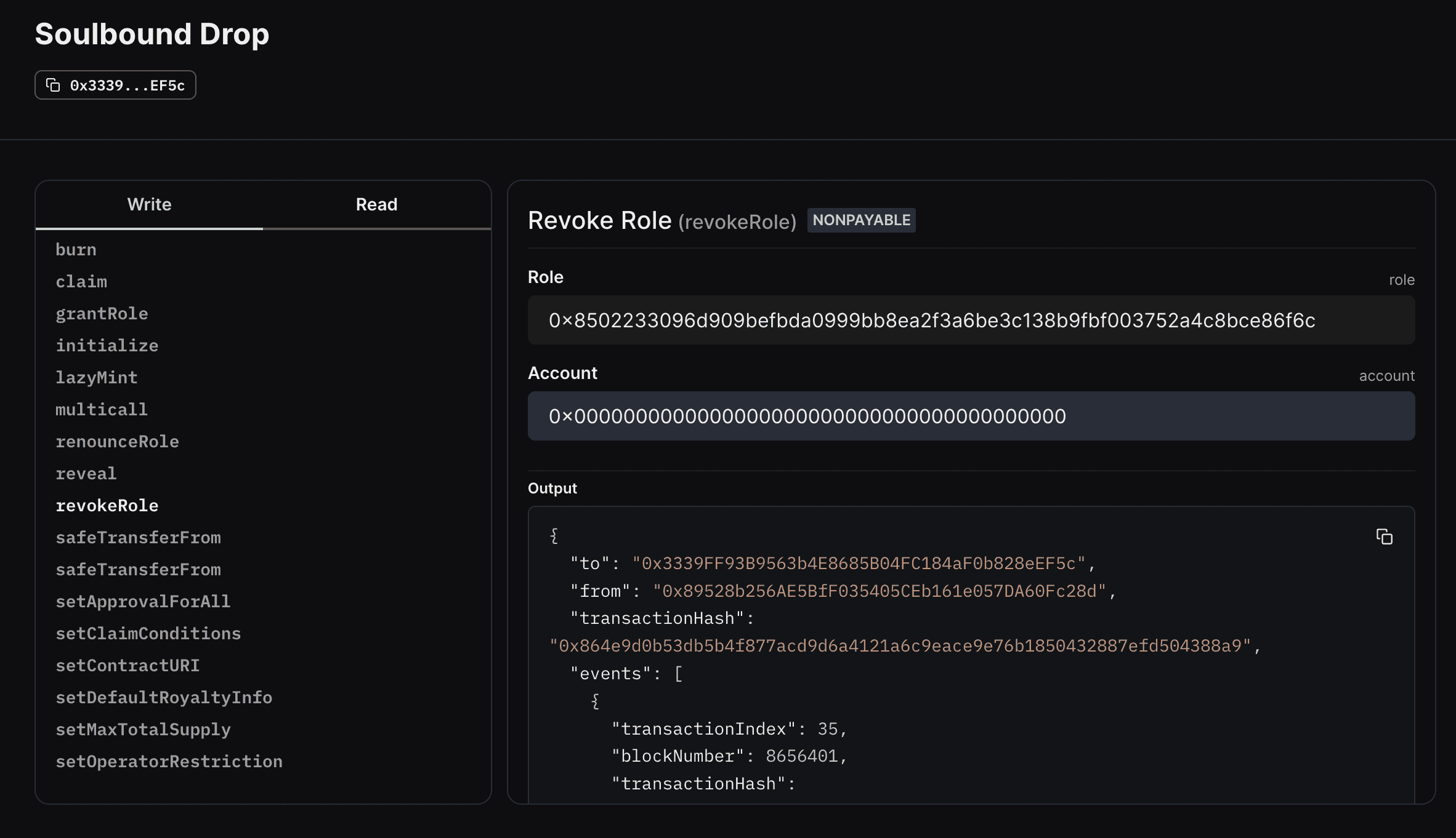 The easiest way is via the Permissions tab on your thirdweb contract dashboard. For a visual walkthrough, check out our guide on making NFTs non-transferable.